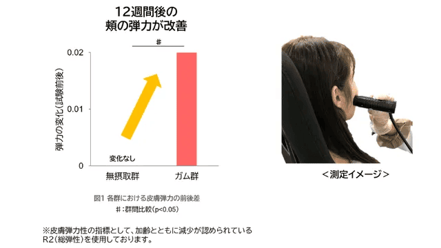 ガムを噛むことでお肌の弾力が改善することが